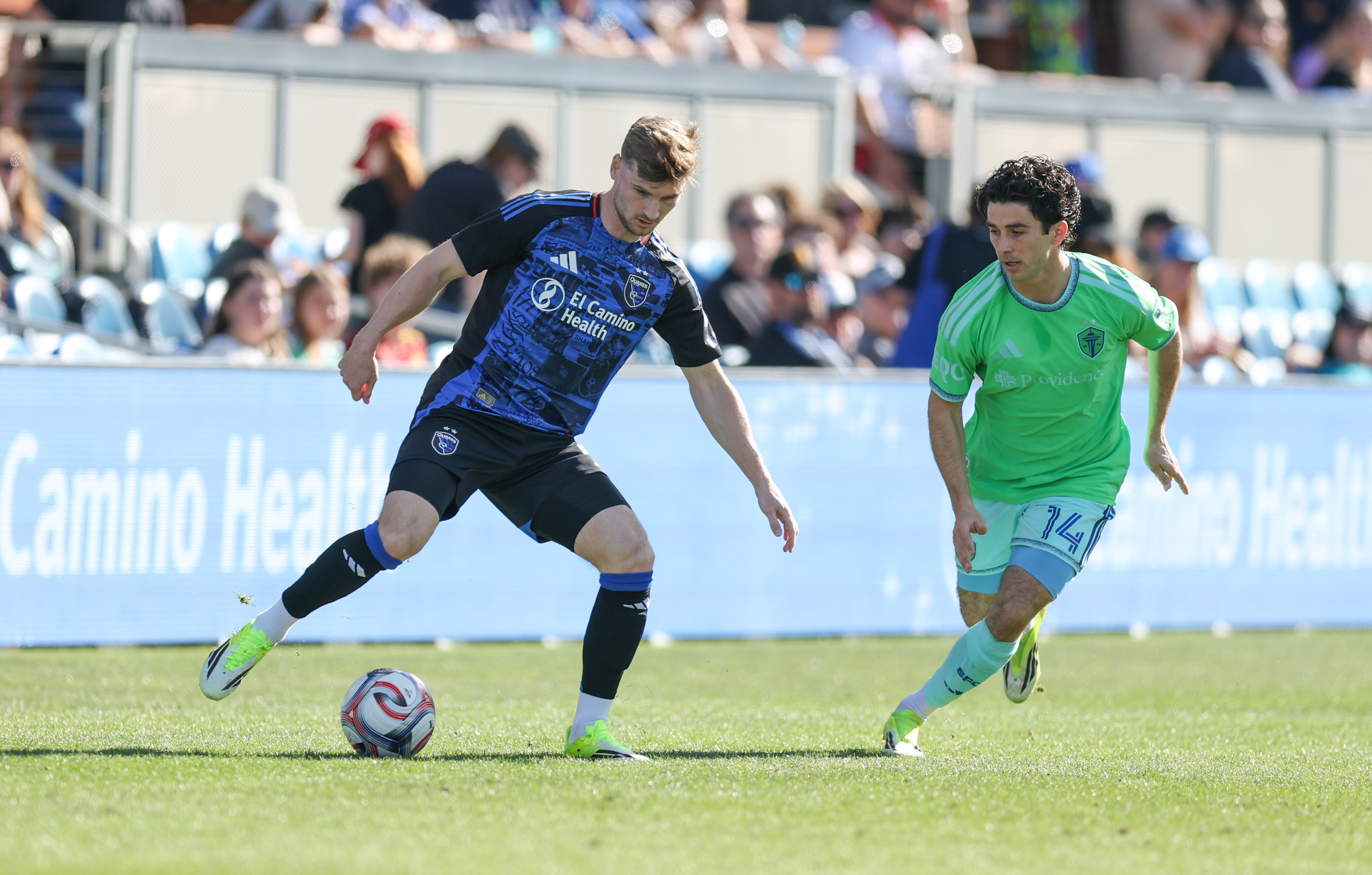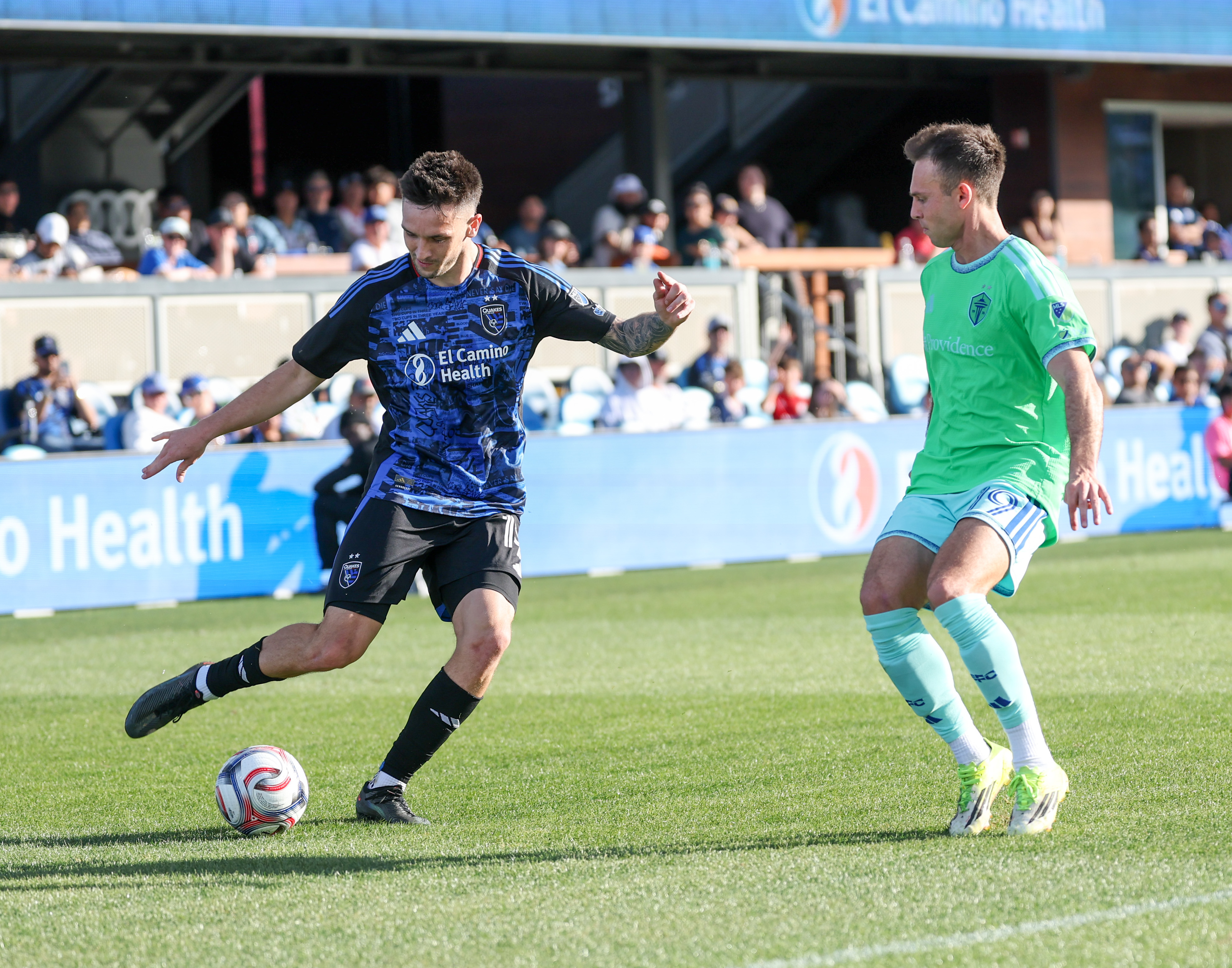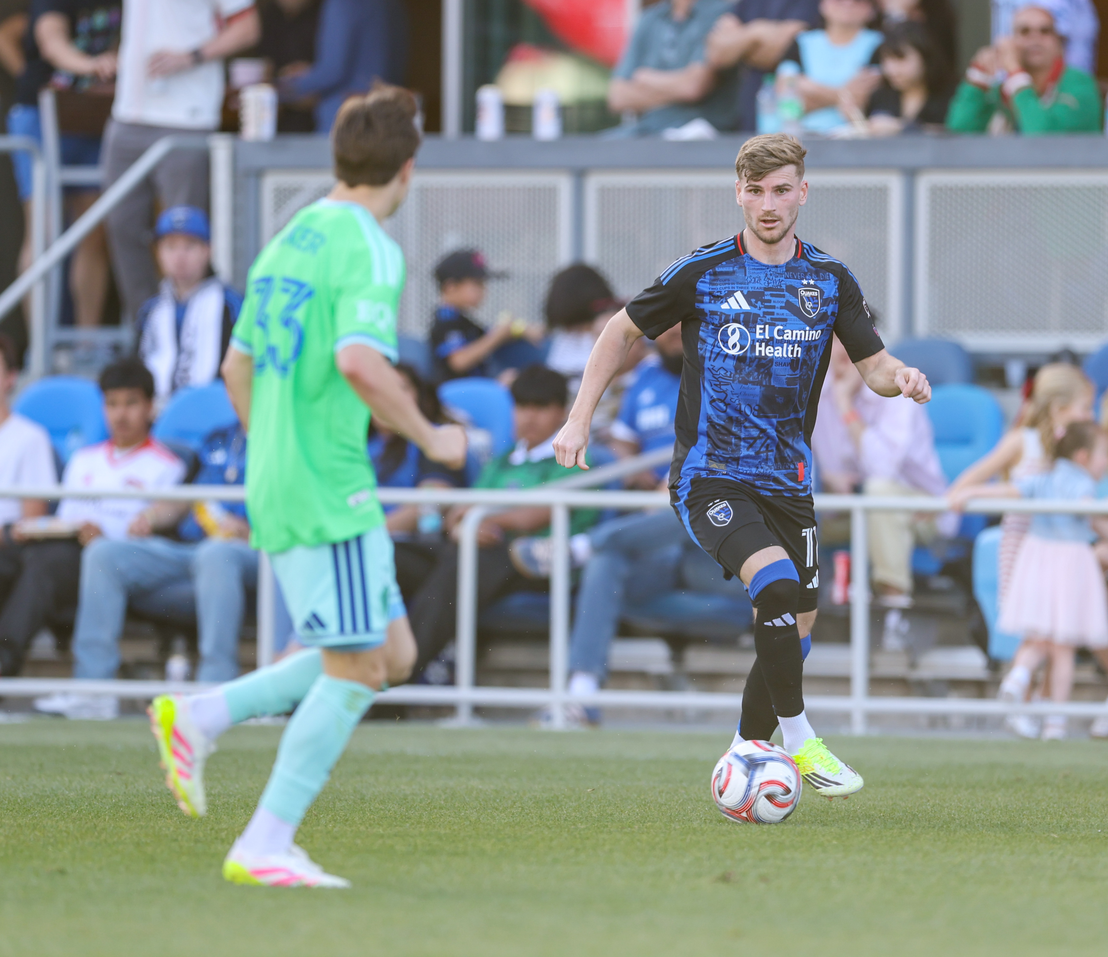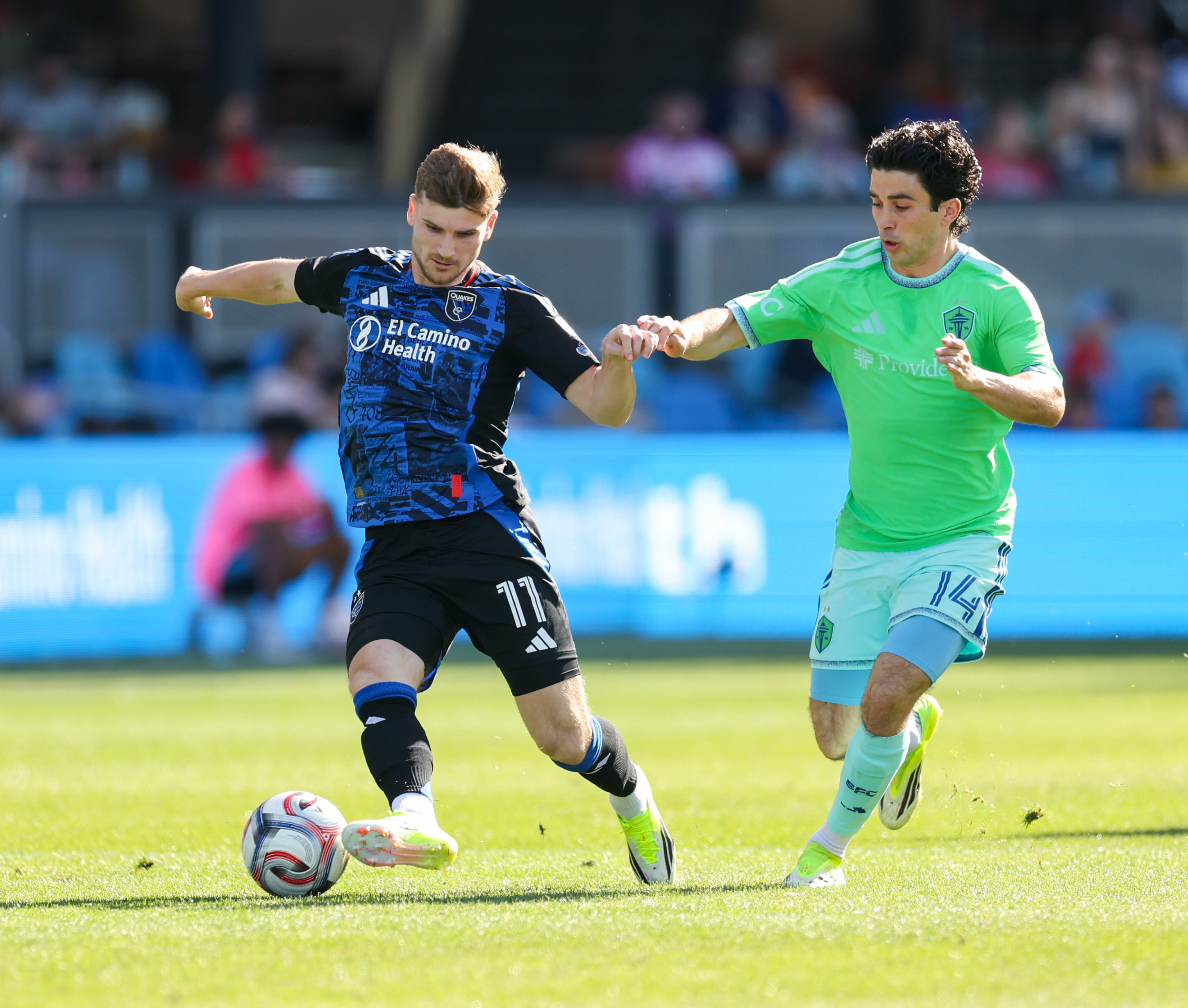 San Jose Earthquakes Goalkeeper DANIEL (42) prepares before the kickoff of the MLS match between the San Jose Earthquakes and the Seattle Sounders at PayPal Park in San Jose, CaliforniaSan Jose Earthquakes Forward TIMO WERNER (11) during the MLS match between the San Jose Earthquakes and the Seattle Sounders at PayPal Park in San Jose, CaliforniaSan Jose Earthquakes Forward TIMO WERNER (11) turns away from pressure from Seattle Sounders Forward PAUL ROTHROCK (14) during the MLS match between the San Jose Earthquakes and the Seattle Sounders at PayPal Park in San Jose, CaliforniaSan Jose Earthquakes Forward TIMO WERNER (11) works under pressure from Seattle Sounders Forward PAUL ROTHROCK (14) during the MLS match between the San Jose Earthquakes and the Seattle Sounders at PayPal Park in San Jose, CaliforniaSeattle Sounders Defender CODY BAKER (33) during the MLS match between the San Jose Earthquakes and the Seattle Sounders at PayPal Park in San Jose, CaliforniaSeattle Sounders Midfielder NIKOLA PETKOVIĆ (44) passes out of pressure from San Jose Earthquakes Midfielder RONALDO VIEIRA (14) during the MLS match between the San Jose Earthquakes and the Seattle Sounders at PayPal Park in San Jose, CaliforniaSeattle Sounders Forward PAUL ROTHROCK (14) crosses the ball during the MLS match between the San Jose Earthquakes and the Seattle Sounders at PayPal Park in San Jose, CaliforniaSan Jose Earthquakes Defender REID ROBERTS (18) passes the ball during the MLS match between the San Jose Earthquakes and the Seattle Sounders at PayPal Park in San Jose, CaliforniaSeattle Sounders Forward GEORGI MINOUNGOU (93) dribbles away from pressure from San Jose Earthquakes Forward OUSSENI BOUDA (7) during the MLS match between the San Jose Earthquakes and the Seattle Sounders at PayPal Park in San Jose, CaliforniaSeattle Sounders Forward GEORGI MINOUNGOU (93) during the MLS match between the San Jose Earthquakes and the Seattle Sounders at PayPal Park in San Jose, CaliforniaSeattle Sounders Forward PAUL ROTHROCK (14) turns the ball away from pressure from San Jose Earthquakes Defender REID ROBERTS (18) during the MLS match between the San Jose Earthquakes and the Seattle Sounders at PayPal Park in San Jose, CaliforniaSeattle Sounders Forward JESÚS FERREIRA (9) drives up the field during the MLS match between the San Jose Earthquakes and the Seattle Sounders at PayPal Park in San Jose, CaliforniaSeattle Sounders Forward JESÚS FERREIRA (9) looks for a teammate during the MLS match between the San Jose Earthquakes and the Seattle Sounders at PayPal Park in San Jose, CaliforniaSeattle Sounders Midfielder NIKOLA PETKOVIĆ (44) takes a shot in the middle of San Jose Earthquakes Midfielder RONALDO VIEIRA (14), San Jose Earthquakes Defender REID ROBERTS (18) and San Jose Earthquakes Midfielder NIKO TSAKIRIS (10) during the MLS match between the San Jose Earthquakes and the Seattle Sounders at PayPal Park in San Jose, CaliforniaSeattle Sounders Midfielder Peter Kingston (45) during the MLS match between the San Jose Earthquakes and the Seattle Sounders at PayPal Park in San Jose, CaliforniaSeattle Sounders Forward JESÚS FERREIRA (9) drives up the field during the MLS match between the San Jose Earthquakes and the Seattle Sounders at PayPal Park in San Jose, CaliforniaSeattle Sounders Forward JESÚS FERREIRA (9) looks for a teammate during the MLS match between the San Jose Earthquakes and the Seattle Sounders at PayPal Park in San Jose, CaliforniaSan Jose Earthquakes Defender DANIEL MUNIE (5) passes the ball during the MLS match between the San Jose Earthquakes and the Seattle Sounders at PayPal Park in San Jose, CaliforniaSan Jose Earthquakes Defender DEJUAN JONES (24) during the MLS match between the San Jose Earthquakes and the Seattle Sounders at PayPal Park in San Jose, CaliforniaSan Jose Earthquakes Forward TIMO WERNER (11) assess his options against pressure from Seattle Sounders Defender CODY BAKER (33) during the MLS match between the San Jose Earthquakes and the Seattle Sounders at PayPal Park in San Jose, CaliforniaSan Jose Earthquakes Midfielder BEAU LEROUX (34) during the MLS match between the San Jose Earthquakes and the Seattle Sounders at PayPal Park in San Jose, CaliforniaSan Jose Earthquakes Forward TIMO WERNER (11) during the MLS match between the San Jose Earthquakes and the Seattle Sounders at PayPal Park in San Jose, CaliforniaSan Jose Earthquakes Forward PRESTON JUDD (19) crosses the ball under pressure from Seattle Sounders Forward DANNY MUSOVSKI (19) during the MLS match between the San Jose Earthquakes and the Seattle Sounders at PayPal Park in San Jose, CaliforniaSeattle Sounders Defender CODY BAKER (33) and San Jose Earthquakes Forward TIMO WERNER (11) battle for the ball near the penalty spot during the MLS match between the San Jose Earthquakes and the Seattle Sounders at PayPal Park in San Jose, CaliforniaSan Jose Earthquakes Forward OUSSENI BOUDA (7) dribbles away from pressure from Seattle Sounders Defender NOUHOU (5) and Seattle Sounders Forward GEORGI MINOUNGOU (93) during the MLS match between the San Jose Earthquakes and the Seattle Sounders at PayPal Park in San Jose, CaliforniaSan Jose Earthquakes Forward OUSSENI BOUDA (7) dribble away from pressure from Seattle Sounders Defender NOUHOU (5) during the MLS match between the San Jose Earthquakes and the Seattle Sounders at PayPal Park in San Jose, CaliforniaSan Jose Earthquakes Forward PRESTON JUDD (19) attempts a shot against Seattle Sounders Goalkeeper ANDREW THOMAS (26) with Seattle Sounders Defender ANTINO LOPEZ (35) trailing during the MLS match between the San Jose Earthquakes and the Seattle Sounders at PayPal Park in San Jose, CaliforniaSan Jose Earthquakes Forward BENJI KIKANOVIĆ (28) pulls the ball back under pressure from Seattle Sounders Forward PAUL ROTHROCK (14) during the MLS match between the San Jose Earthquakes and the Seattle Sounders at PayPal Park in San Jose, CaliforniaSan Jose Earthquakes Defender VIT