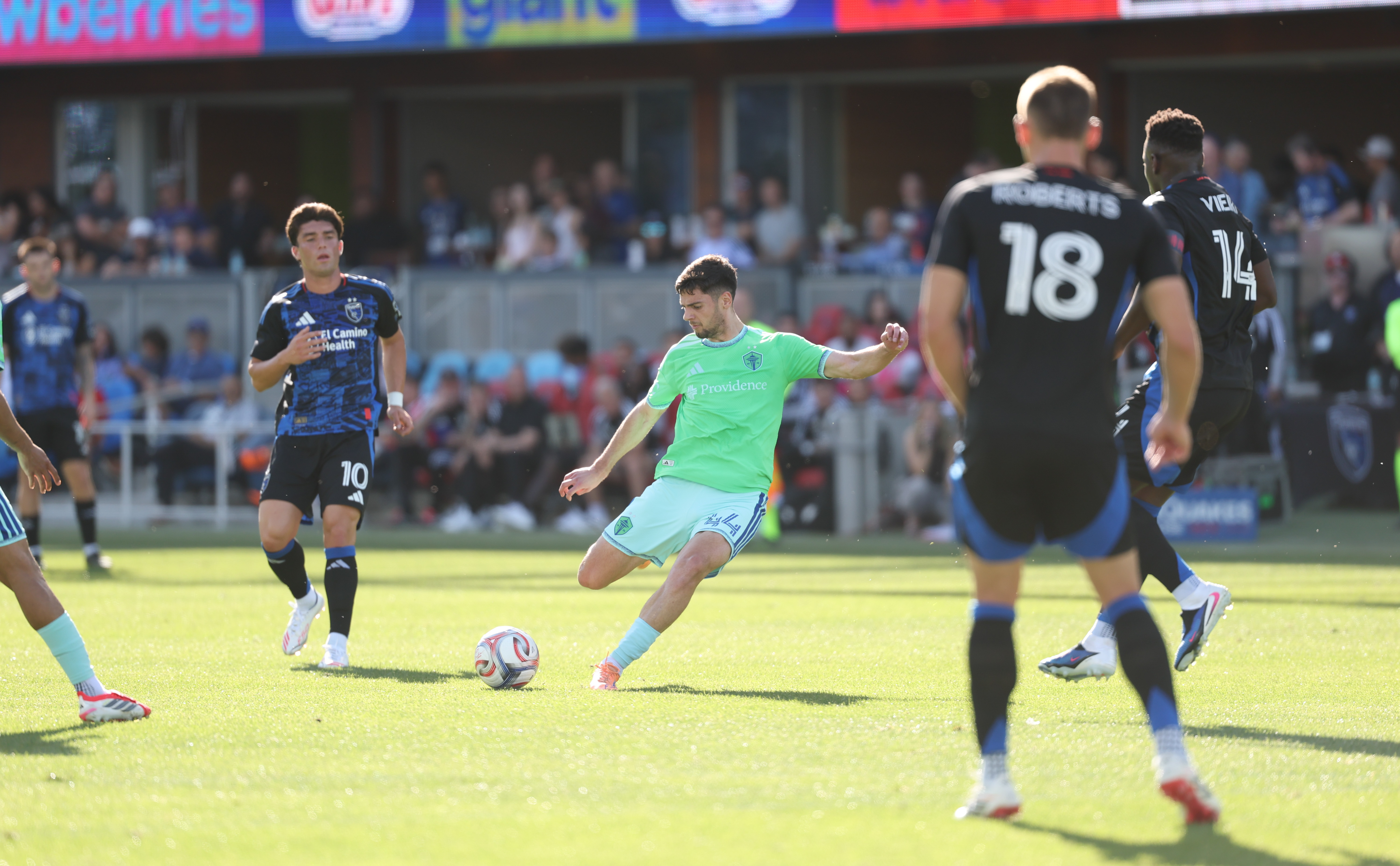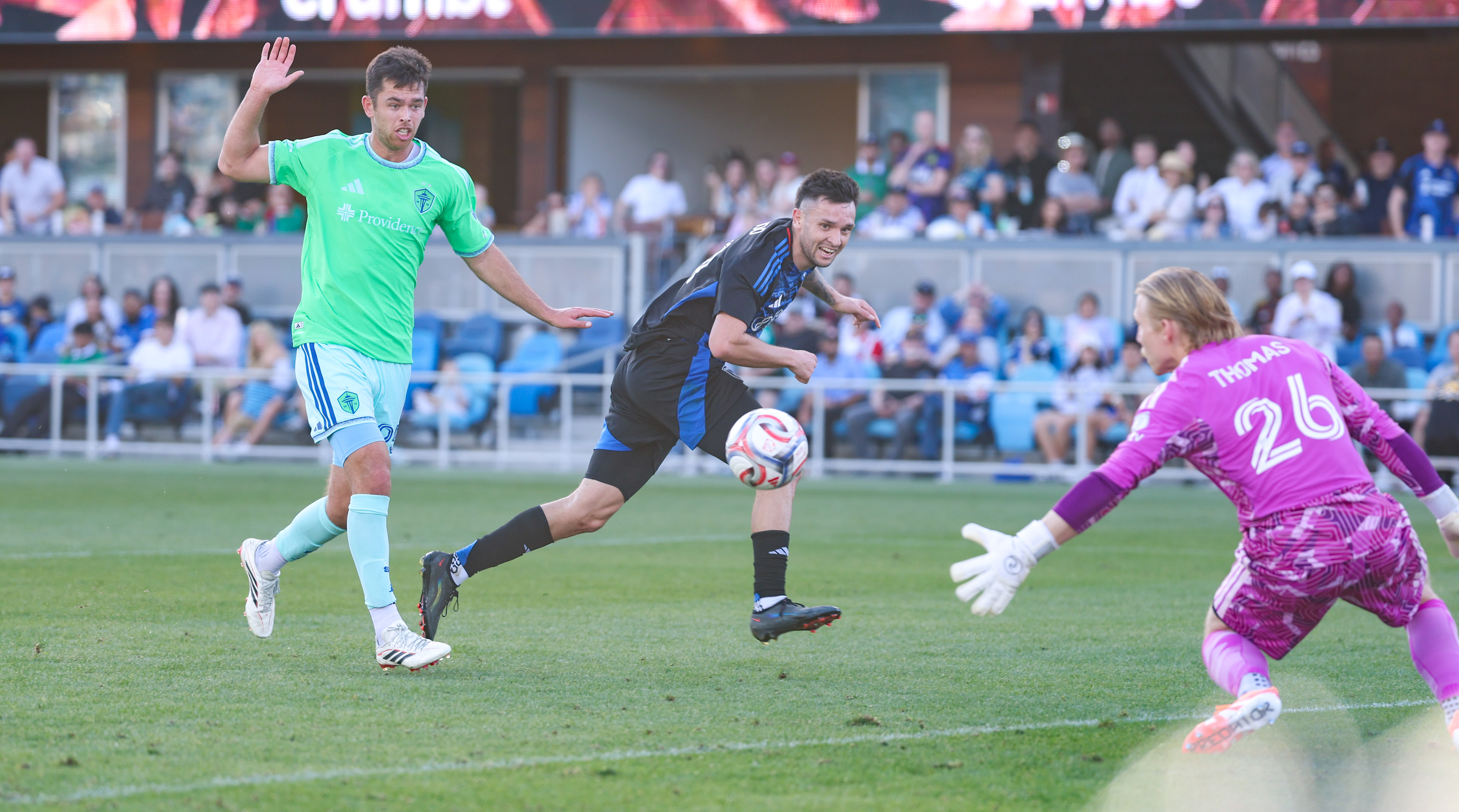 The visitors struck first in minute 20 when Danny Musovski and Jesús Ferreira combined to feed a streaking Paul Rothrock on the right wing, whose subsequent low finish gave Seattle a 1-0 lead and snapped the Quakes’ club-record streak of not conceding to start the season at 290 minutes.