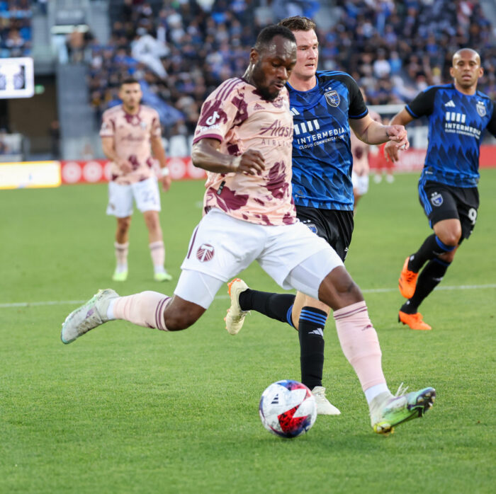 Portland Timbers Forward FRANCK BOLI (7) shoots during the MLS match between the San Jose Earthquakes and the Portland Timbers at PayPal Park in San Jose, California