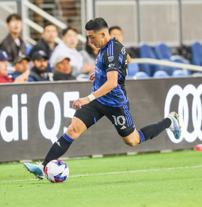 San Jose Earthquakes Midfielder CRISTIAN ESPINOZA (10) during the MLS match between the San Jose Earthquakes and the Portland Timbers at PayPal Park in San Jose, California