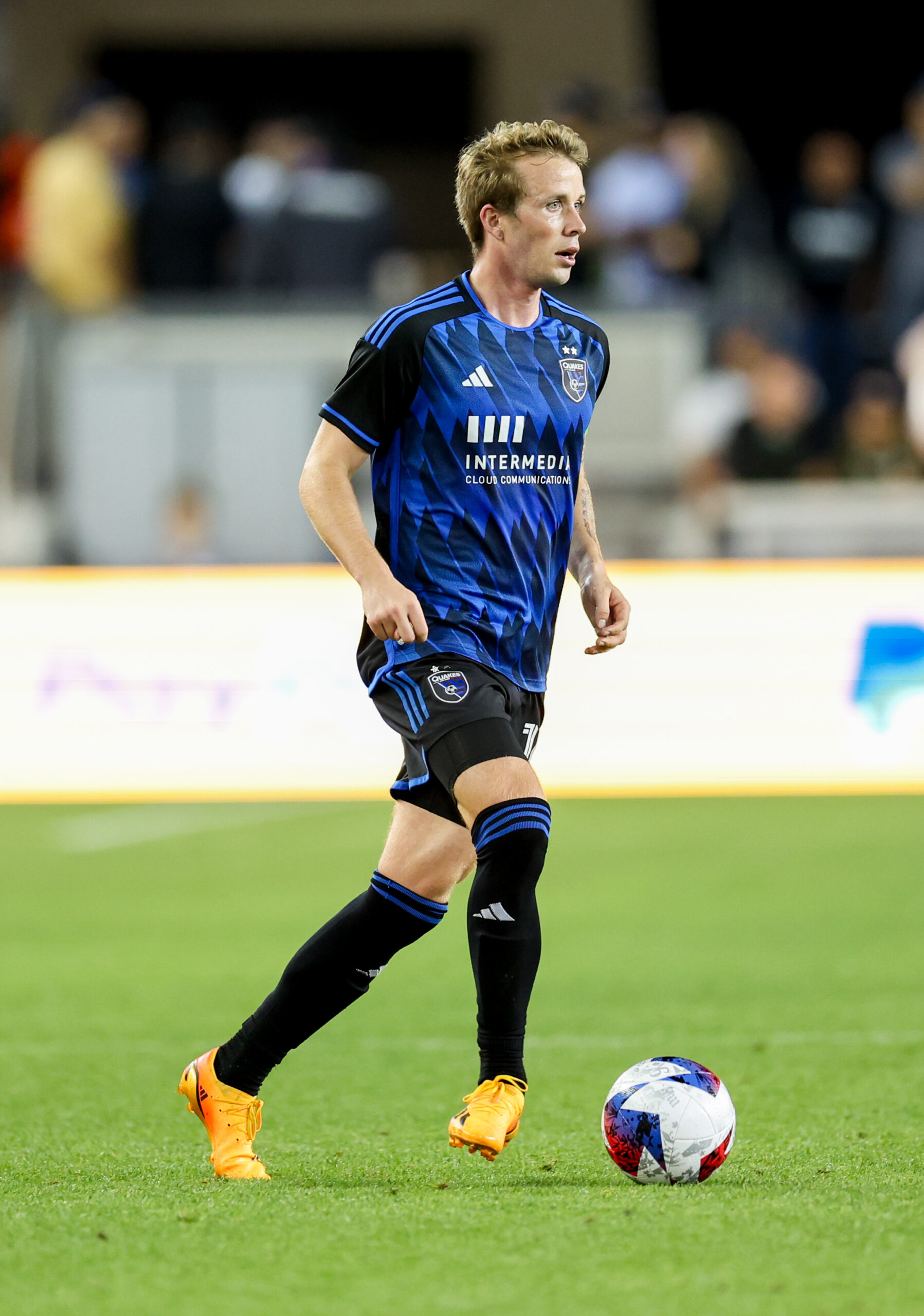 San Jose Earthquakes Midfielder JACKSON YUEILL (14) during the MLS match between the San Jose Earthquakes and the Portland Timbers at PayPal Park in San Jose, California