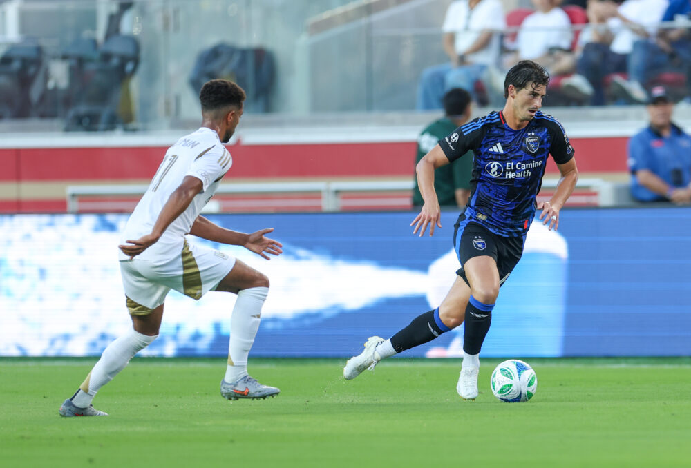 San Jose Earthquakes Midfielder IAN HARKES (6) dribbles away from pressure from Los Angeles FC Midfielder TIMOTHY TILLMAN (11) during the MLS match between the San Jose Earthquakes and Los Angeles FC at Levi’s Stadium in Santa Clara, California