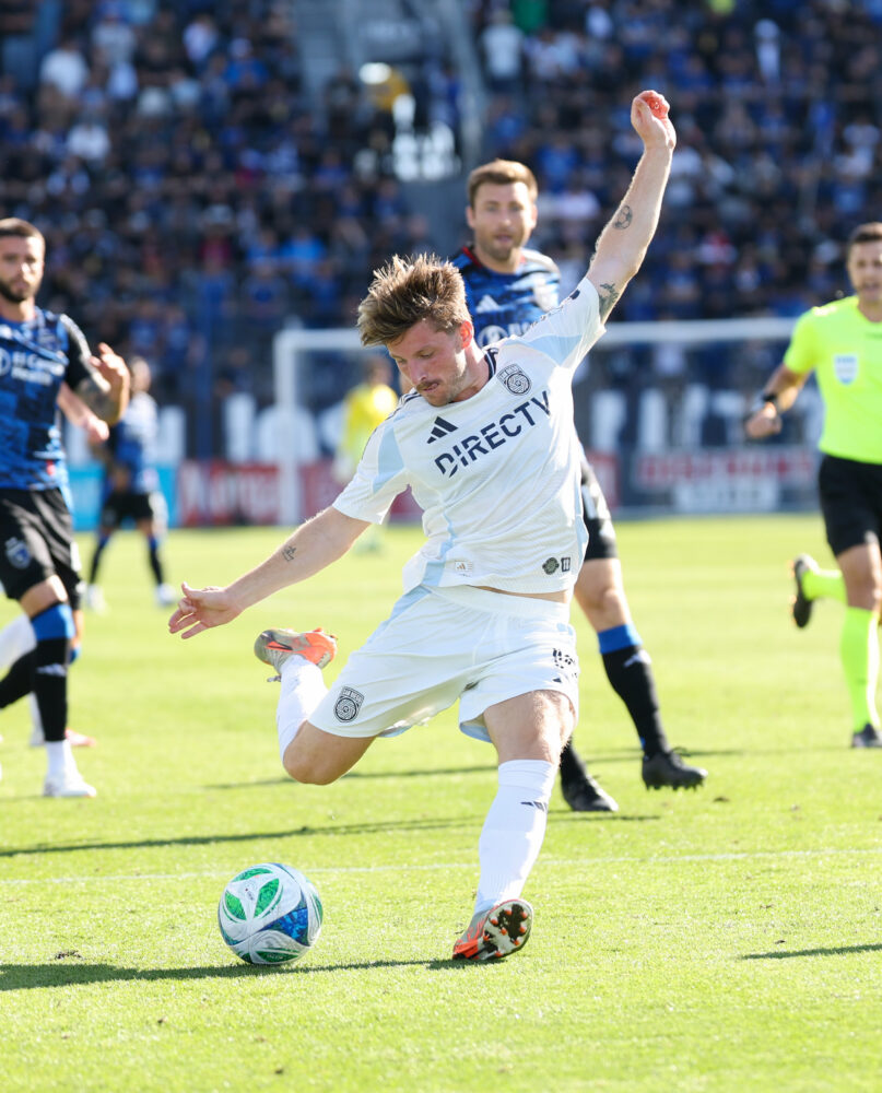 San Diego FC Forward ANDERS DREYER (10) shoots during the MLS match between the San Jose Earthquakes and San Diego FC at PayPal Park in San Jose, California