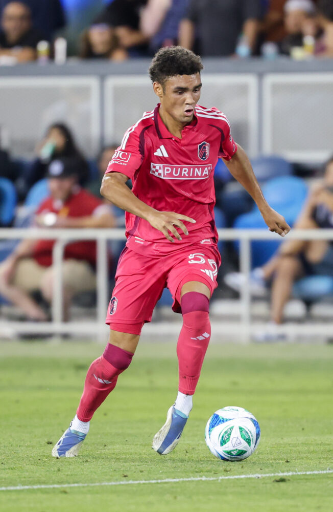 St Louis City SC Forward MYKHI JOYNER (59) during the MLS match between the San Jose Earthquakes and St Louis City SC at PayPal Park in San Jose, California
