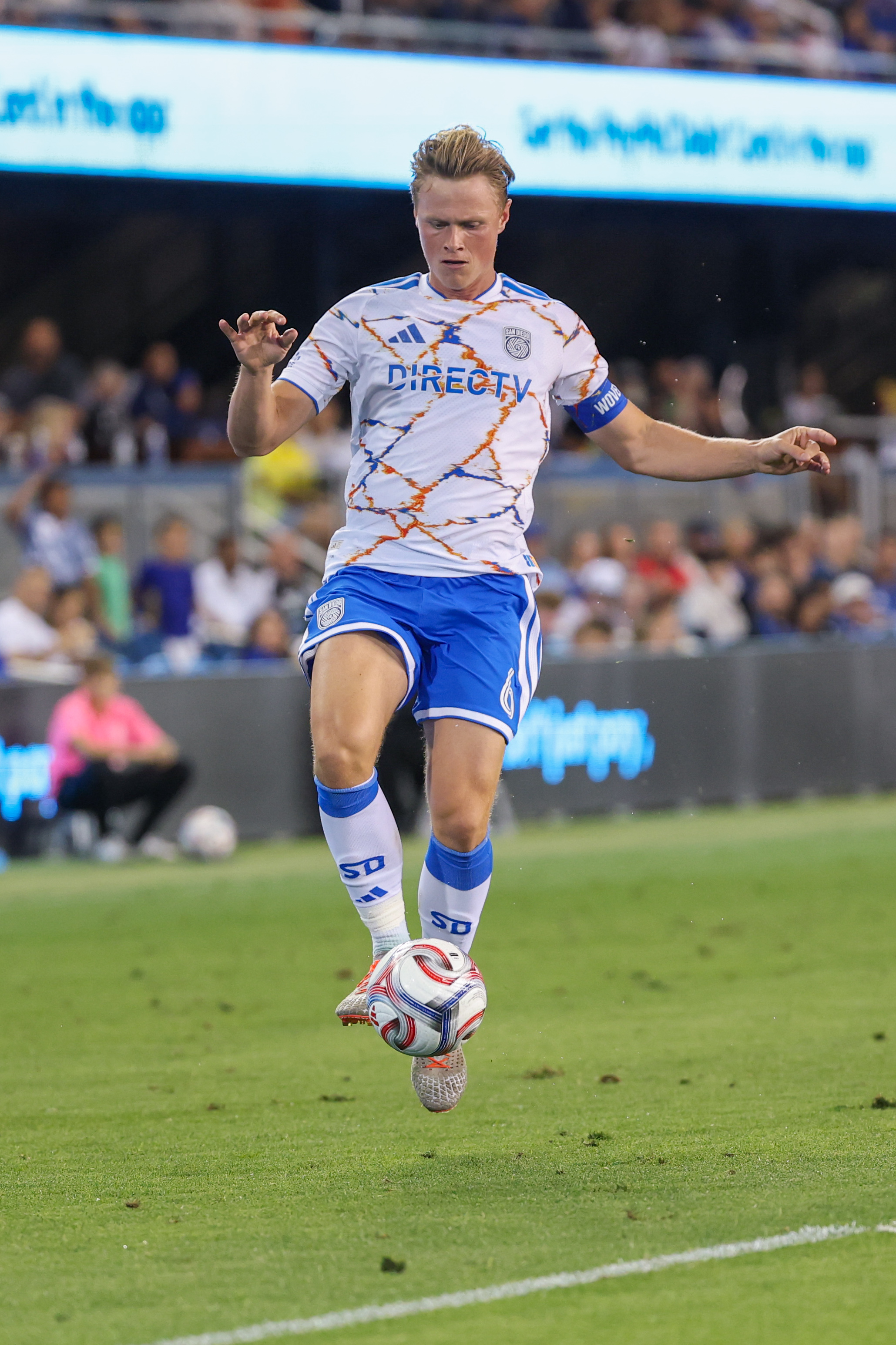 San Diego FC Forward JEPPE TVERSKOV (6) controls the ball during the MLS match between the San Jose Earthquakes and San Diego FC at PayPal Park in San Jose, California