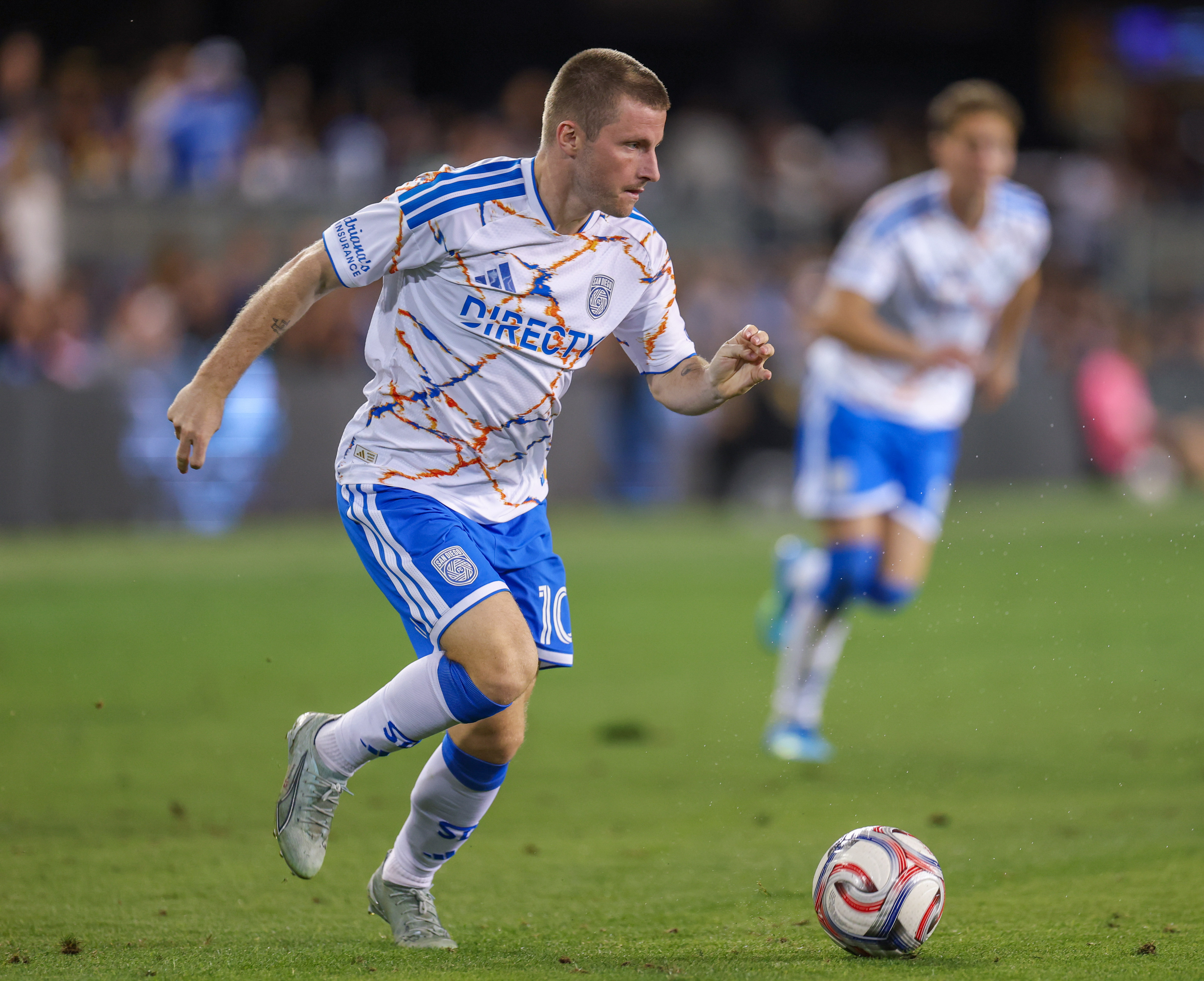 San Diego FC Forward ANDERS DREYER (10) drives the ball upfield during the MLS match between the San Jose Earthquakes and San Diego FC at PayPal Park in San Jose, California