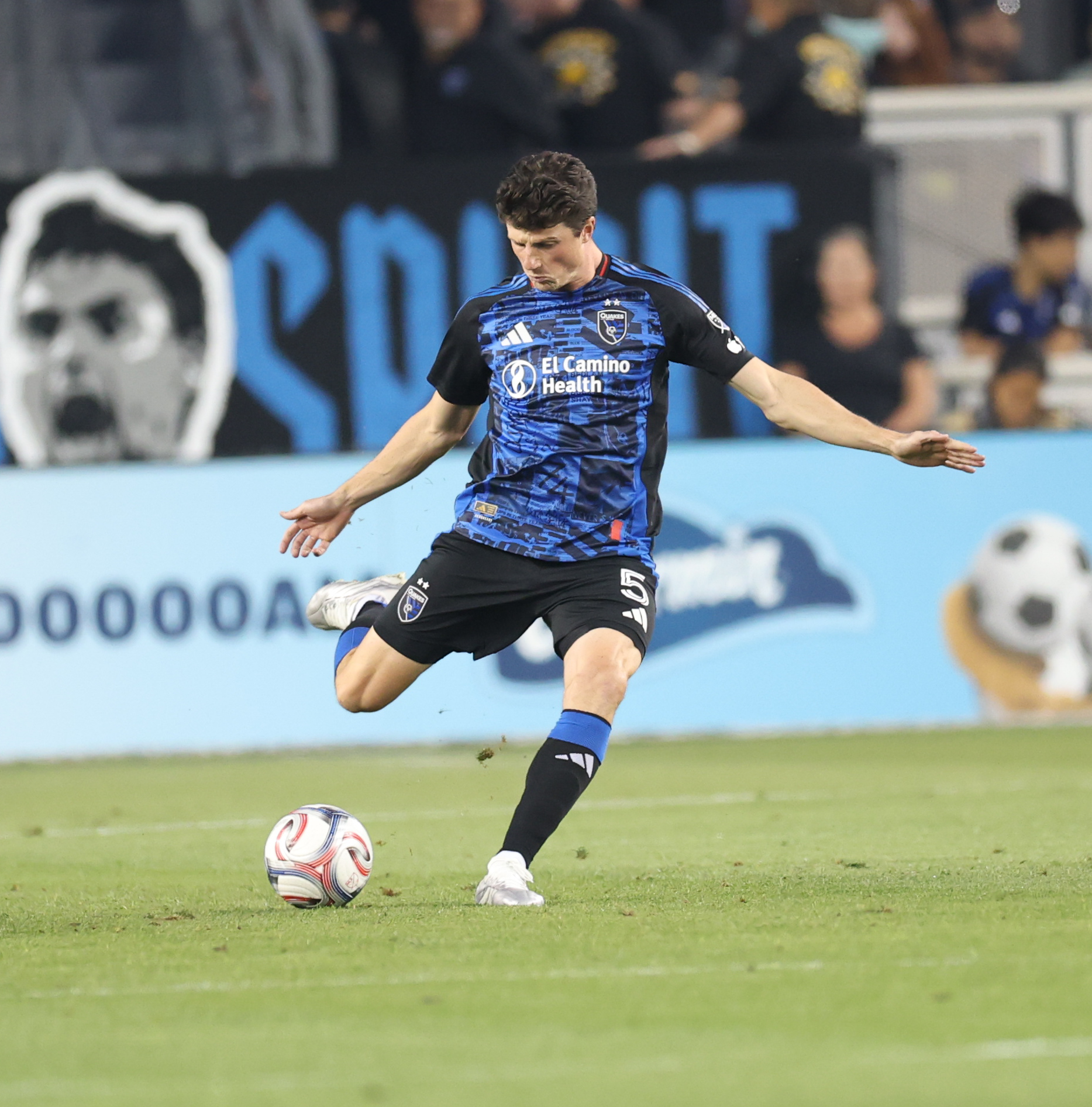 San Jose Earthquakes Defender DANIEL MUNIE (5) clears the ball during the MLS match between the San Jose Earthquakes and San Diego FC at PayPal Park in San Jose, California