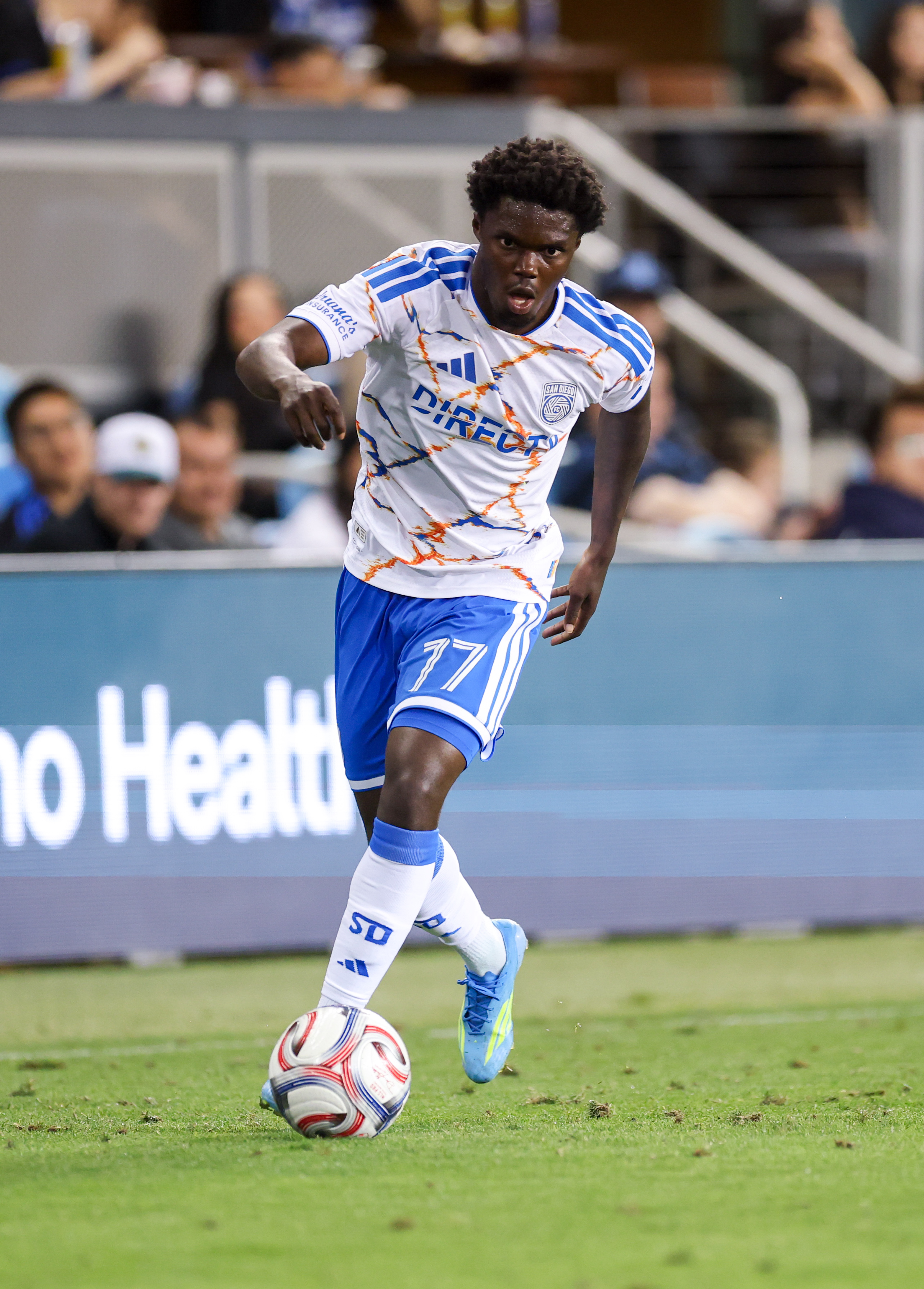 San Diego FC Forward ALEX MIGHTEN (77) dribbles up field during the MLS match between the San Jose Earthquakes and San Diego FC at PayPal Park in San Jose, California