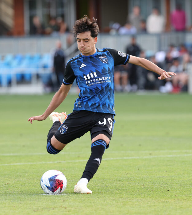 San Jose Earthquakes Midfielder CRUZ MEDINA (99) shoots a penalty kick during the MLS Next Pro match between the San Jose Earthquakes II and the Tacoma Defiance at PayPal Park in San Jose, California