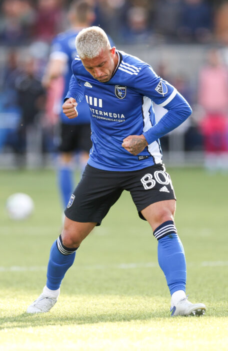 San Jose Earthquakes Defender FRANCISCO CALVO (80) celebrates his second goal during the MLS match between the San Jose Earthquakes and Columbus Crew at PayPal Park in San Jose, California