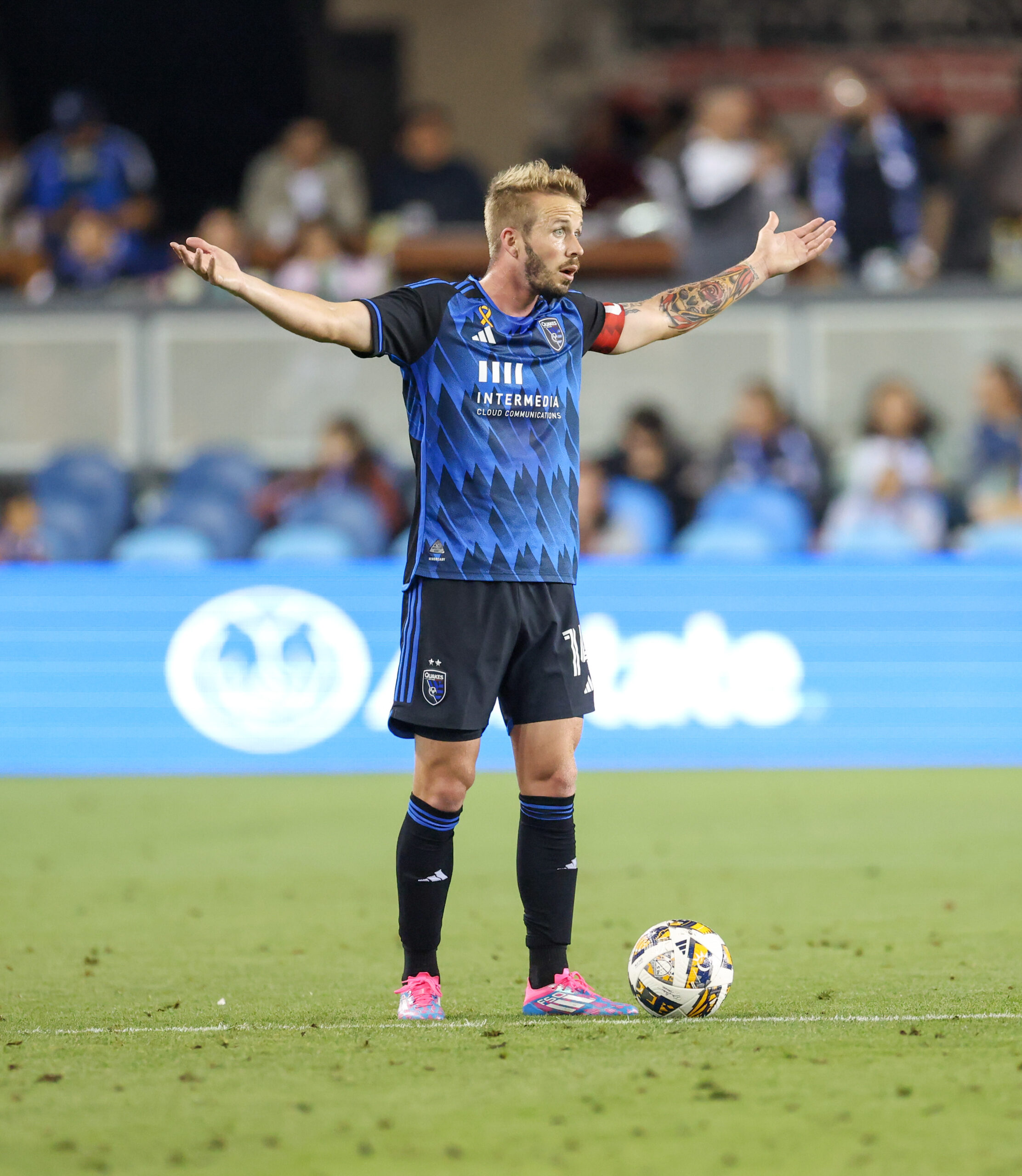 San Jose Earthquakes Midfielder JACKSON YUEILL (14) questions the referee during the MLS match between the San Jose Earthquakes and Minnesota United at PayPal Park in San Jose, California