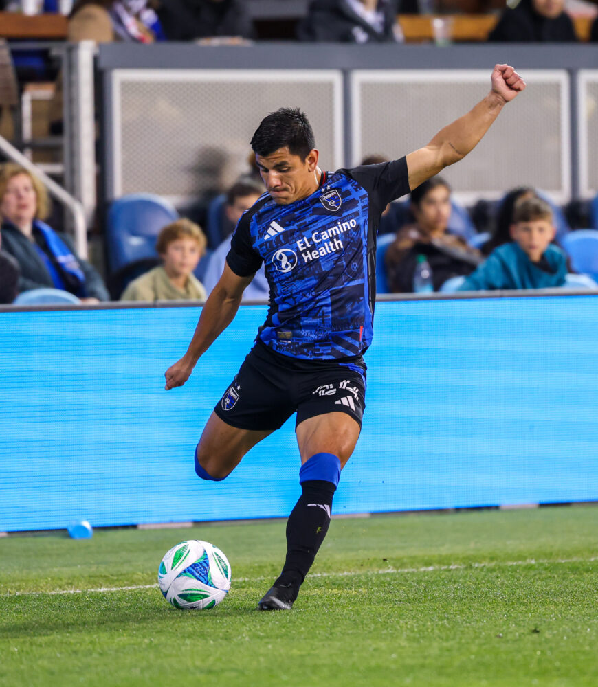 San Jose Earthquakes Defender NICK LIMA (24) crosses the ball during the MLS match between the San Jose Earthquakes and the Seattle Sounders at PayPal Park in San Jose, California